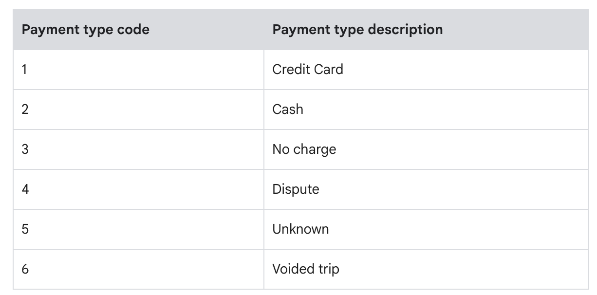 - Create a pie chart to identify which payment type is most frequently used to pay the fare amount.