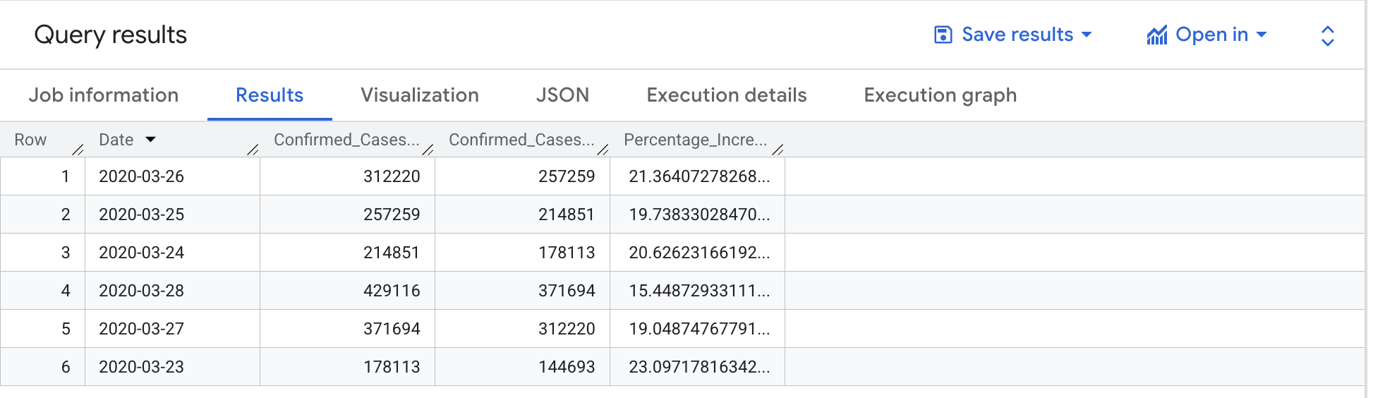 (cases - LAG(cases) OVER(ORDER BY date))*100/LAG(cases) OVER(ORDER BY date) AS percentage_increase